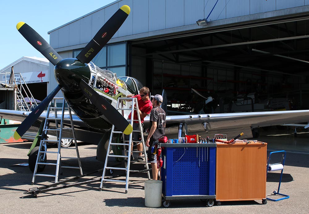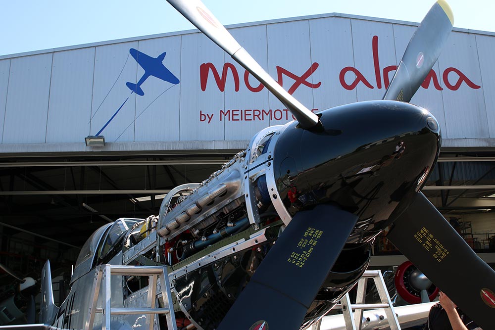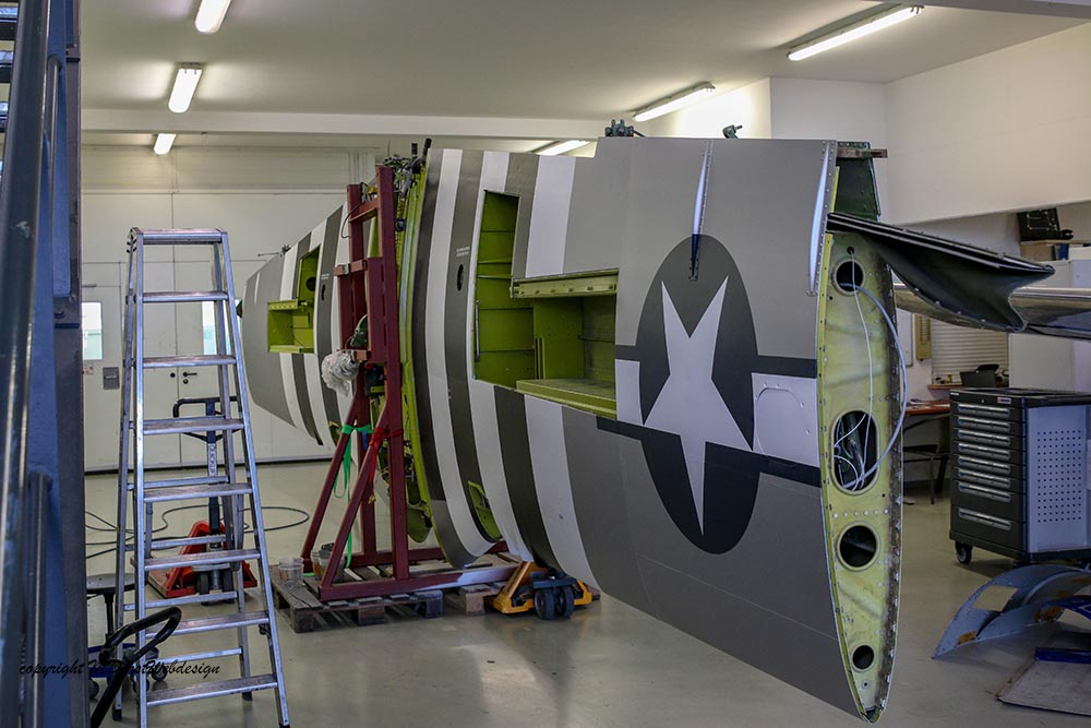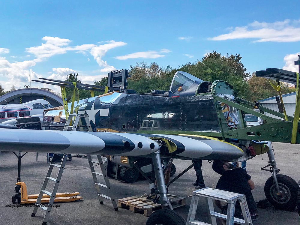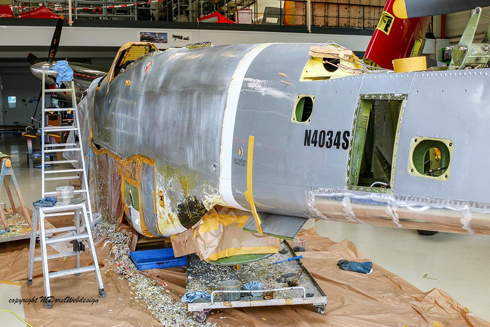 Das Flugzeug wurde am 09.April 2011 zu uns in die Werft überführt, Rob Davies samt Tochter liess es sich nicht nehmen das Flugzeug eigenhändig nach Bremgarten zu fliegen. Wie erhielten vom Eigentümer, der "Hangar10-collection" auf der Insel Usedom den Auftrag das Flugzeug gründlichst zu checken, zu überholen und mit der Deutschen Zulassung D-FBBD zu versehen. Zu den allfälligen Arbeiten zählte auch das Entlacken des Flugzeuges mit darauf folgender Politur in Naturmetall-finish. Pünktlich zu den "Flying Legends" Duxford war das Flugzeug auch fertiggestellt und wurde fulminant vom vormaligen Eigener Rob Davies bei der größten Airshow Europas präsentiert. Leider ging das Flugzeug am letzten Tag der Airshow durch einen Zusammenstoß unverschuldet verloren. Rob Davies konnte sich zum Glück mit dem Fallschirm retten. Wer weiß, vielleicht ensteht eine neue "BBD" wie der Phoenix aus der Asche.